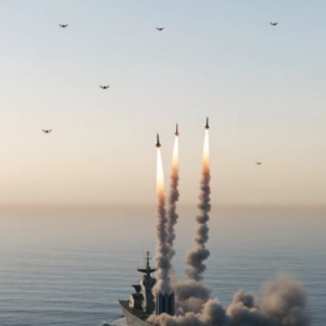 The image captures a powerful representation of modern naval warfare, where advanced missile systems are used to counter the growing threat of unmanned aerial vehicles. In recent years, the United…