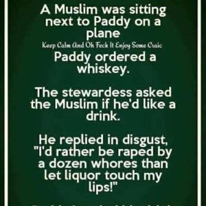A Muslim was sitting next to Paddy on a plane. Keep Calm And Oh Feck It Enjoy Some Craic Paddy ordered a whiskey. The stewardess asked the Muslim if he’d…