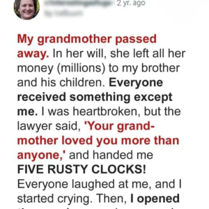My grandma’s last gift wasn’t what anyone expected. Not the house. Not the money. Just a box of ticking clocks and a handwritten note that changed everything. In another town,…